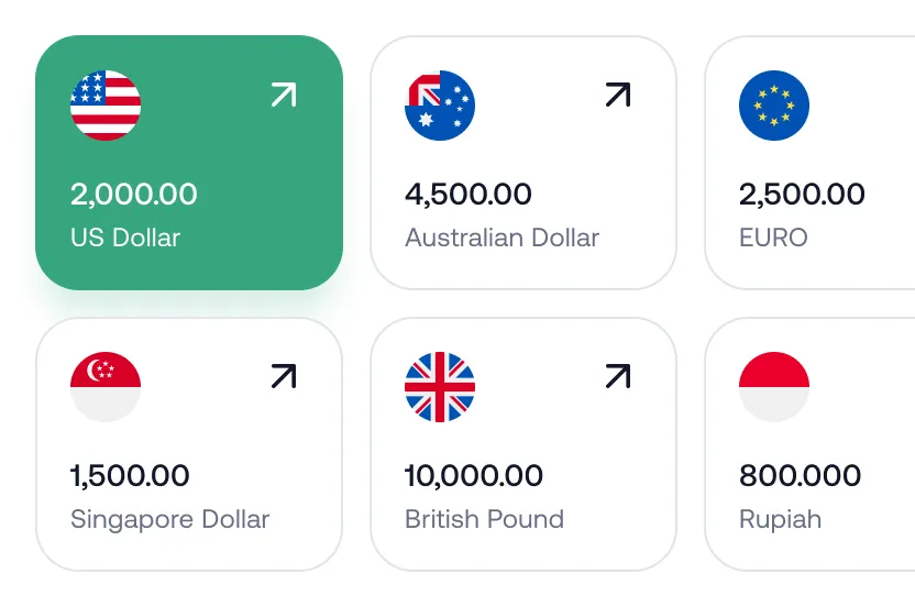Wire money in 18 currencies.